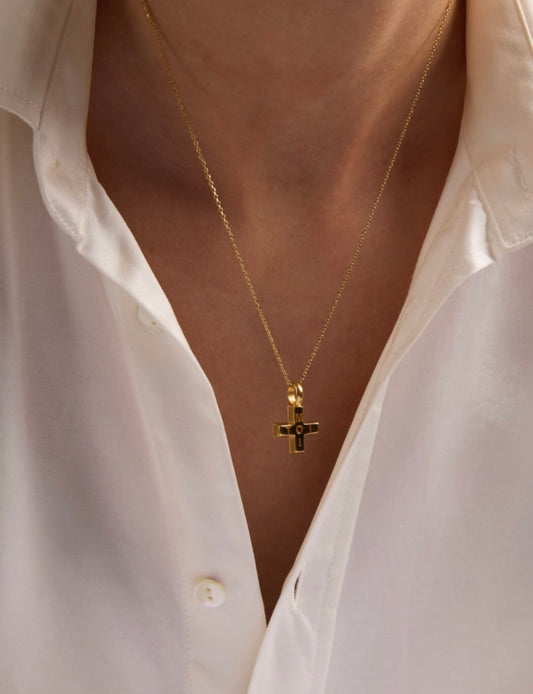 Small gold moi + Toi cross on trace chain