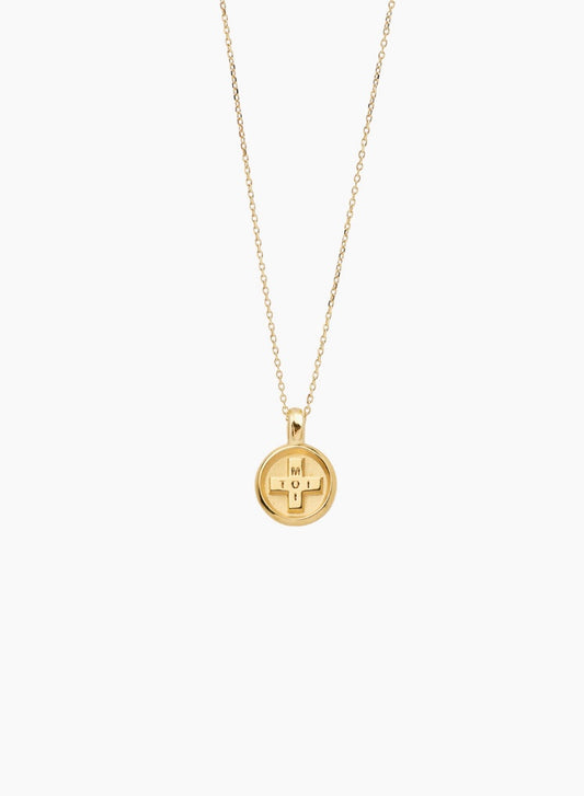 Small gold Moi + Toi disc on trace chain