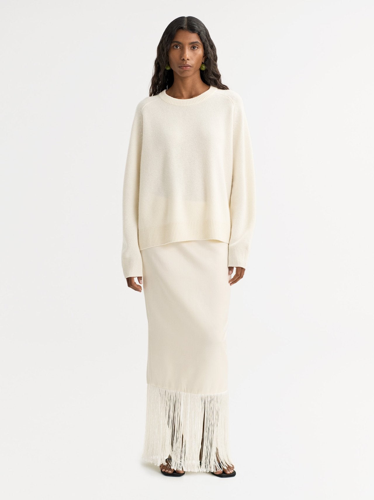 Plain knit oversized crewneck sweater in 100% cashmere.