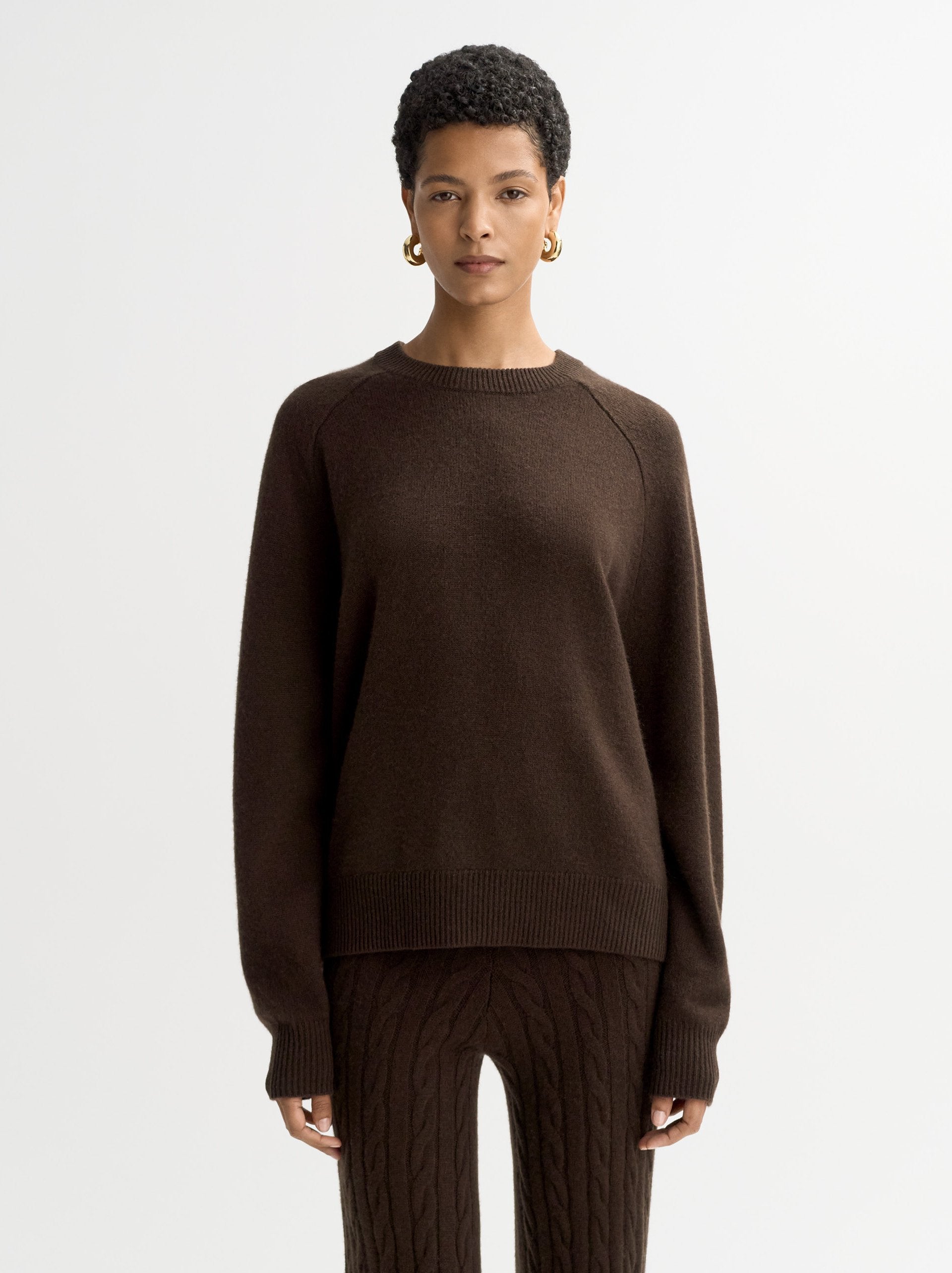 Plain knit oversized crewneck sweater in 100% cashmere.