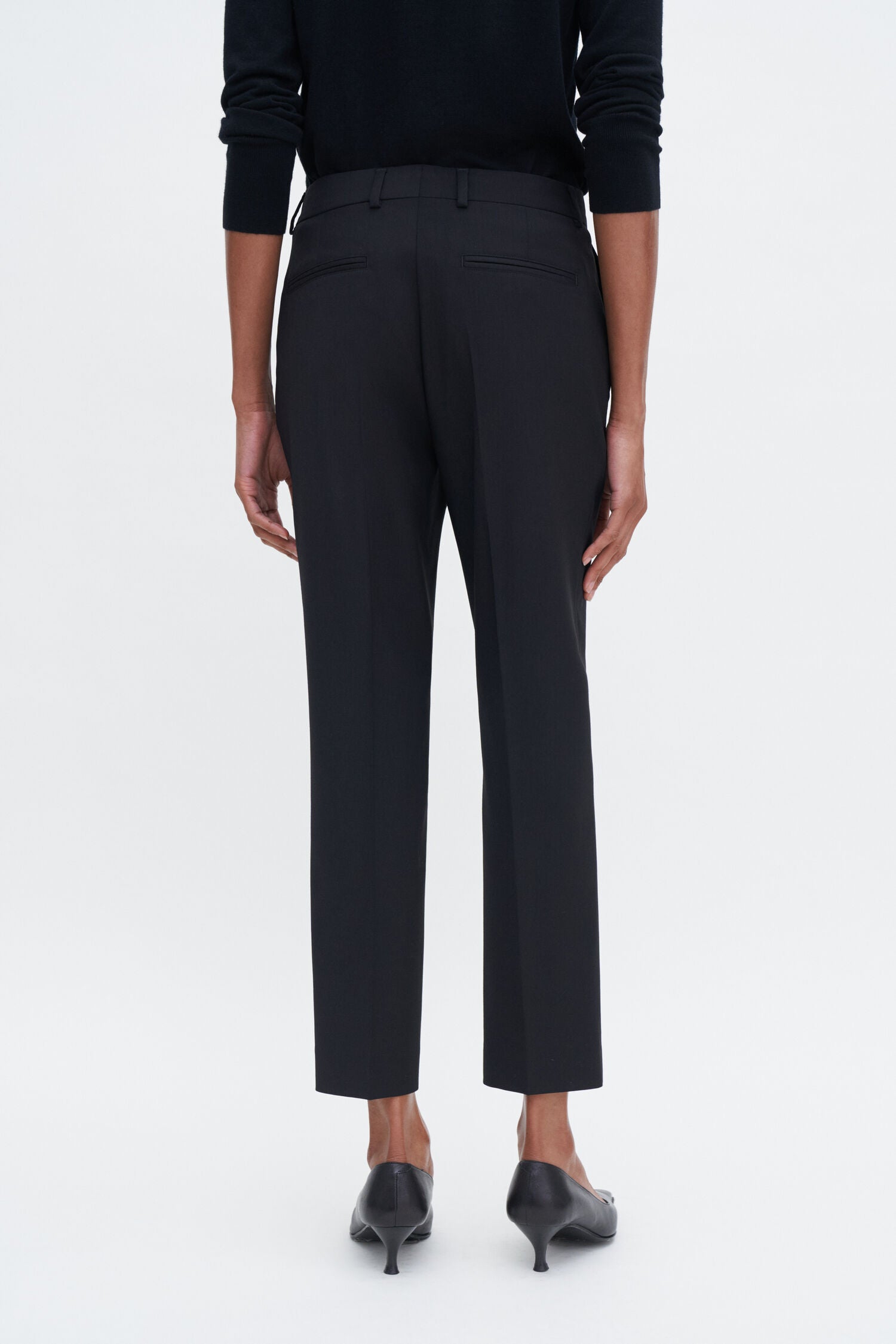 The Emma Cropped Cool Wool Trousers have a regular fit, mid-rise waist and cropped length that tapers slightly to the hem. Tailored from dark navy merino wool with slight stretch. Wear them with the Sasha Cool Wool Blazer for a full suit look. This piece is part of our Core Collection: permanent styles designed with the essential elements of a staple wardrobe in mind.