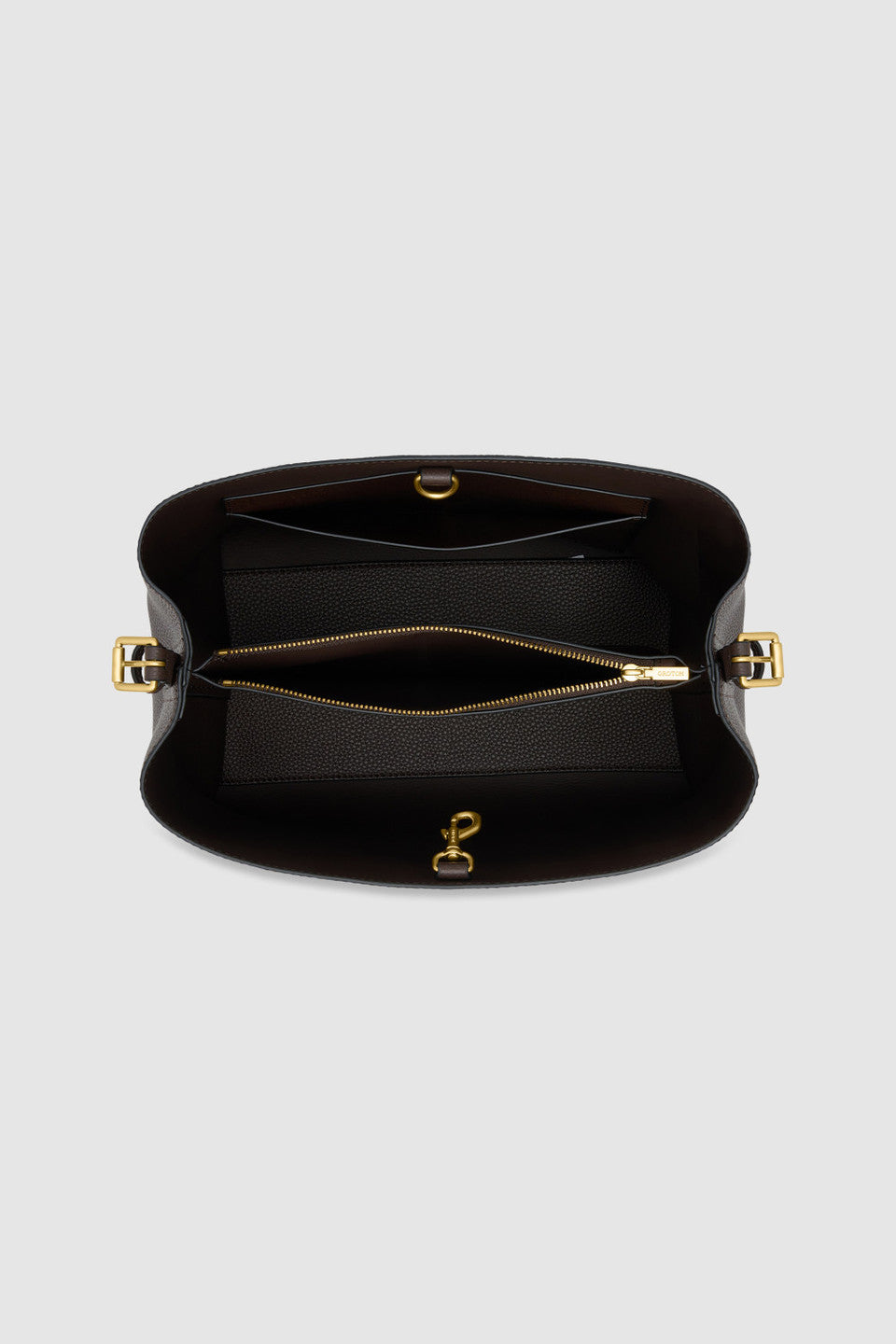 The Margot Hobo is created from a slouchy pebble leather. The day bag features a shoulder strap with roller buckle detail for easy length adjustment and maximum comfort. The interior is lined with contrast light smoke leather and has two main compartments divided by a large internal zip pocket and features a slip pocket plus a leather tab with secure dog clip closure. The bag features a foil embossed logo and a bag charm with a metal plate as a finishing touch.