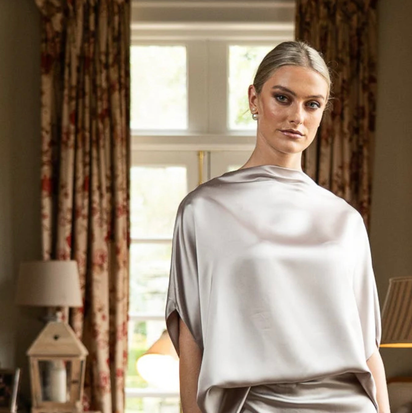 The Stella top offers effortless appeal in a soft fluid fabric. Featuring a batwing sleeve which provides just enough coverage for arms and a high neckline which can be worn straight across or slightly cowled. Button and loop opening at the back neck and open vent at the bottom allows for ease of wearing.